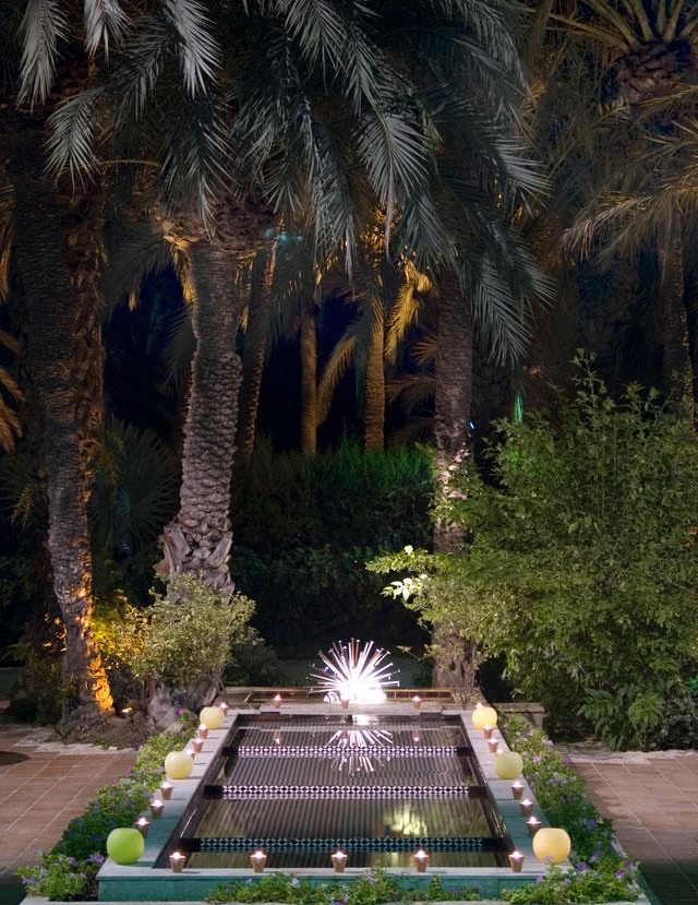 Tanto en los colores como en las formas, el hotel respondía a un estilo típicamente del sur, con fachadas en terracota y albero. Para unificar el diseño hacia el exterior, y siempre con la palmera datilera como eje fundamental, se planteó una alberca central con un diseño simétrico, como evocación del origen fenicio-árabe del palmeral y la importancia que la conservación y gestión del agua escasa tenía y ha tenido en la zona.