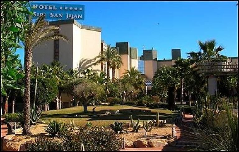 Las especies vegetales dominantes eran las palmeras, tanto datileras como washingtonia. También algunos ejemplares de palmito. El resto de la vegetación era arbustiva, plantas de temporada y pradera en deficiente estado. En cualquier caso, la disposición de los elementos vegetales no respondía a criterio alguno, salvo en el caso de las palmeras que arropaban la alta fachada del hotel.
