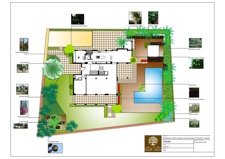 Se escogieron especies de mucho porte, algunas por especial deseo del cliente, como Ficus rubiginosa, Washingtonia filifera, Chorisia speciosa y Sterculia.