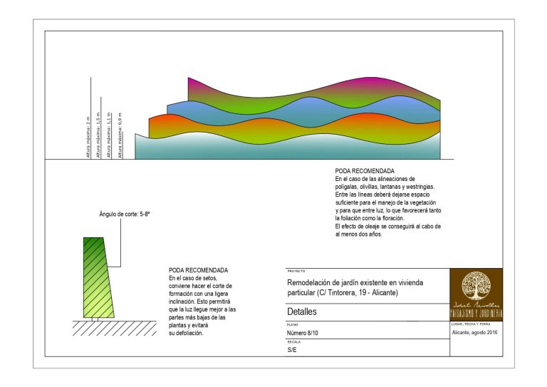 En cambio, el resto del cerramiento tenía que mantener la privacidad de la familia. Para ello, se reforzó con ciprés en varias zonas y se completó con vegetación arbórea o arbustiva, según el caso, para cerrar bien las vistas a los vecinos y a la calle.