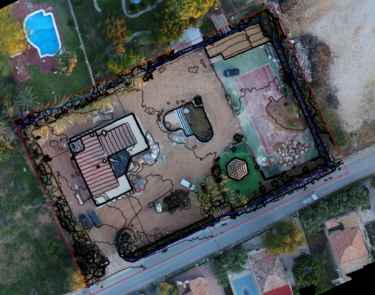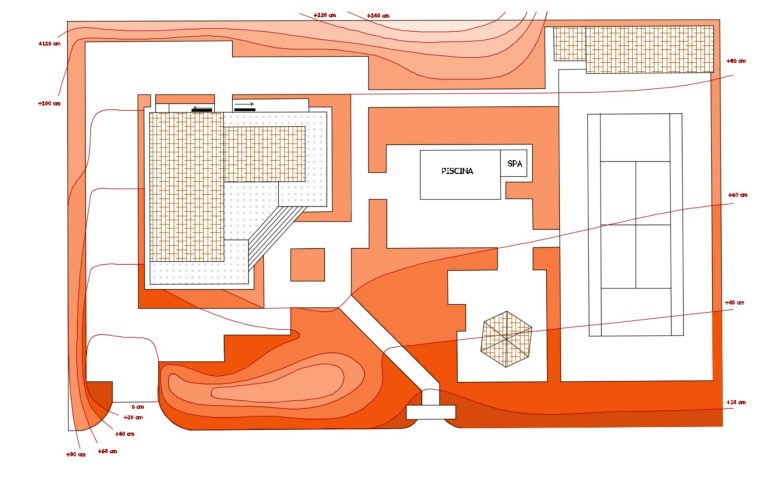 Se realizó un vuelo de dron para la obtención de imágenes aéreas de la parcela y sus curvas de nivel. Esto facilitó el cálculo del movimiento de tierras a realizar.