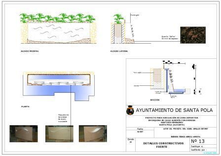 Se construyó un kiosco de madera, perfectamente integrado, con una superficie de tarima flotante, y una fuente alegórica al mar, que junto con la vegetación arbustiva dispuesta en telones, creó un ambiente perfecto para tomar algo en un rincón del parque.